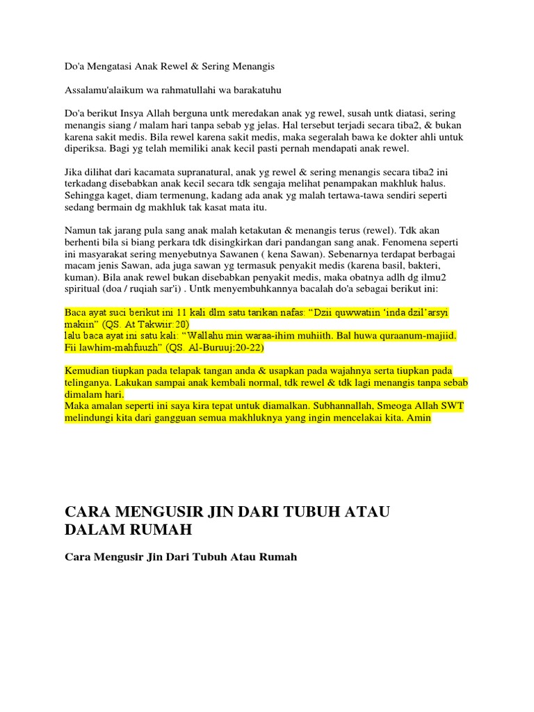 Melalui ayat ini, anda dapat memanjatkan doa agar anak tidak rewel lagi dan anak kembali tenang. Selain doa, anda juga dapat belajar mengenali arti tangisannya sehingga dapat memberikan penanganan yang tepat. Alternatif lain, kurangi waktu ketika menyusui. Bila orang tua mencurigai hal ini maka yang perlu dilakukan adalah membaca mantra di bawah ini: Memiliki anak yang rewel, bandel, dan sering sakit tentu akan sangat merepotkan, namun harus anda pahami bahwa ini akan menjadi ujian dari allah subhanahu wata'ala.