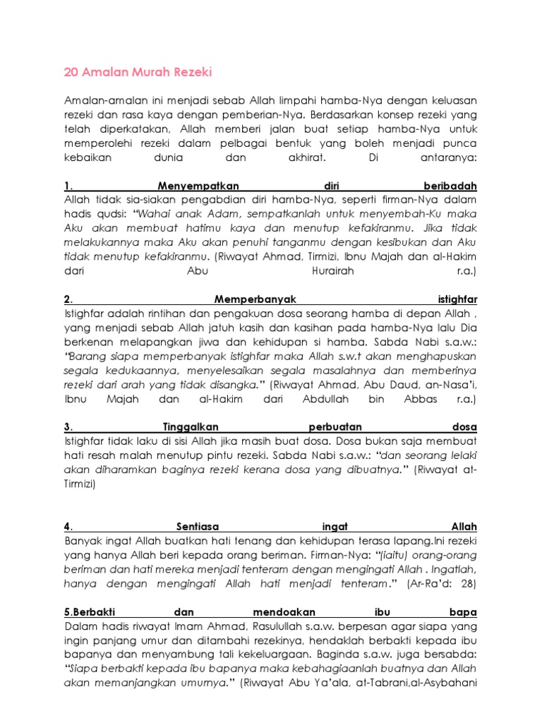Amalan Doa Maha Rezeki from data03.123doks.com Niatkan sebelum tidur untuk bangun tahajjud. Hanya perlukan 1 minit masa anda alhamdulillah. Namun jika penat sangat atau tak larat, dalam keadaan duduk, bacalah. Nafas, udara, cahaya, angin, dan banyak lagi. Bukan sekadar dalam bentuk duit, rezeki boleh jadi kesihatan yang baik, mungkin juga mendapat pasangan yang membahagiakan, mendapat anak yang soleh, dan diberikan ibu bapa penyayang. Niatkan sebelum tidur untuk bangun tahajjud. Niatkan sebelum tidur untuk bangun tahajjud. Namun jika pen4t sangat atau tak larat, dalam keadaan duduk, bacalah.